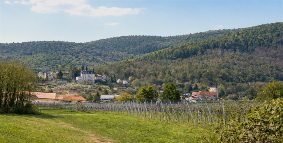 Der unverbaubare, frontale Blick auf das Haardter Schloss sowie die unmittelbare Nähe zu Weinbergen und Pfälzerwald machen diese Lage einzigartig.